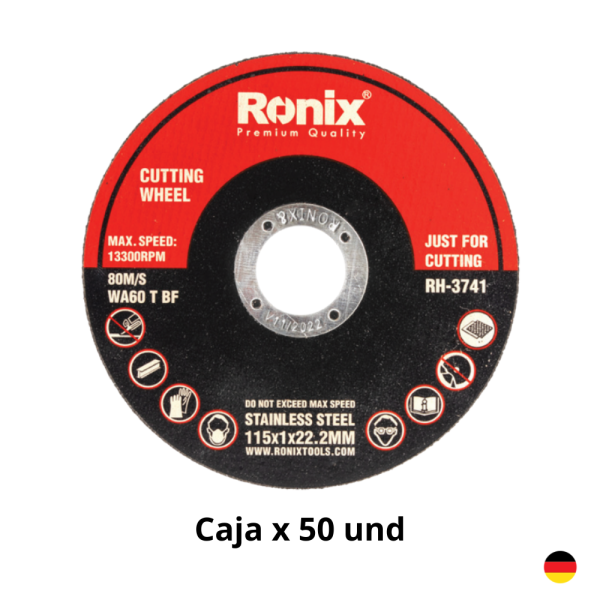 Disco De Corte Fino INOX 4.5″ 115×1.0x22.23mm Caja 50 Unidades RONIX RH-3741 Industrial