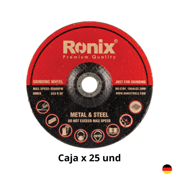 Disco De Desbaste 7″ Metal 180x6x22.2mm Caja 25 Unidades RONIX RH-3704 Industrial